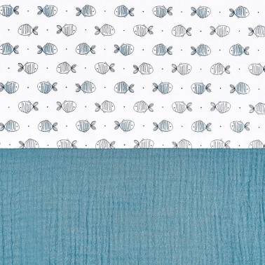 Tejido exterior bámbula 100% algodón. Tejido interior estampado peces 100% algodón.