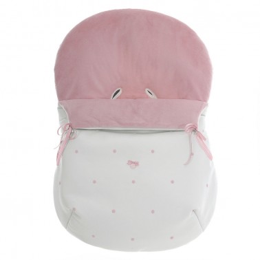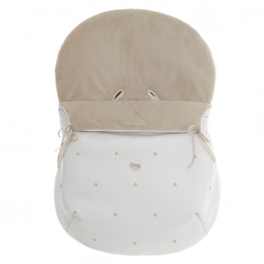 Saco para portabebé o grupo 0 en polipiel exterior blanca con bodoques bordados y con relleno aislante térmico.