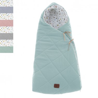Es saco que combina dos tejidos 100% algodón orgánico tanto exterior como interior, ideal para proteger la piel de los bebés.