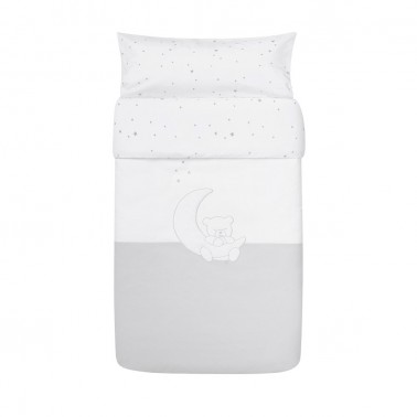 Saco nórdico de cuna con relleno y desenfundable, modelo Teddy en gris de Petit Praia.