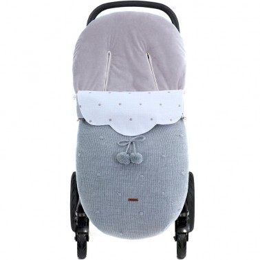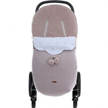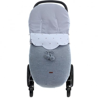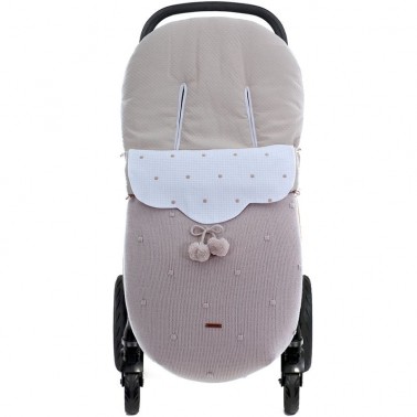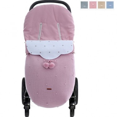 Saco para silla universal y para silla gemelar o ligera en punto con embozo desmontable con bordado de topos.