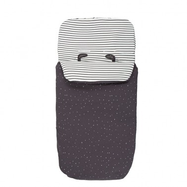 Bonito saco para silla válido para diferentes estaciones Guau, en gris marengo y blanco.