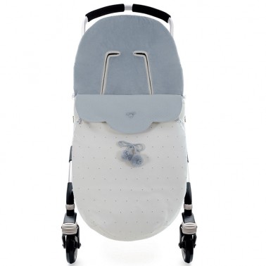 Es válido para la mayoría de las sillas de paseo. Exterior en polipiel con bordado de estrellitas y en el interior tejido piqué o tejido pelo suave. Muy confortable.