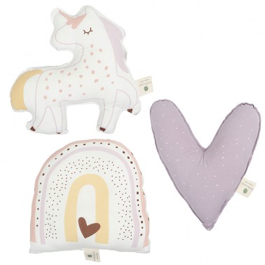 Un arcoiris, un unicornio y un corazón darán color a la cuna de tu bebé.